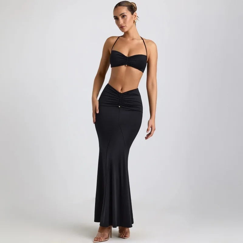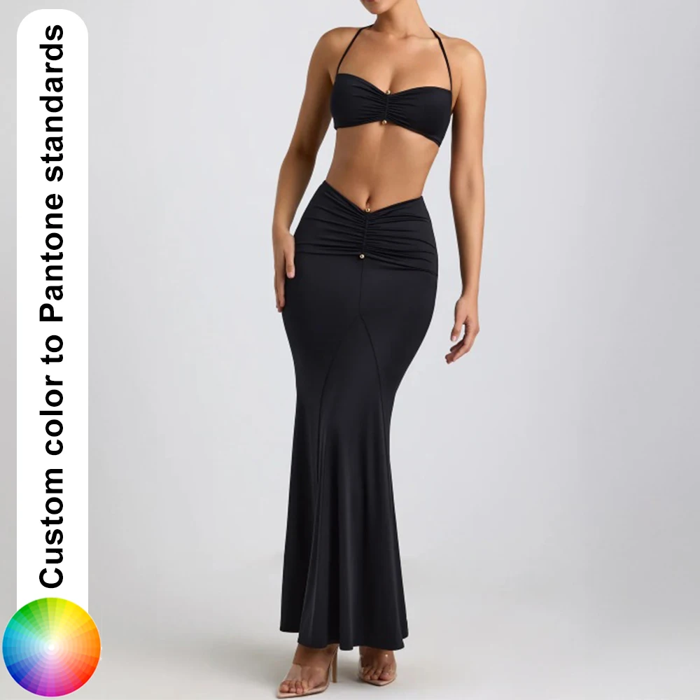 Summer Club Night Beach Halter Crop Top Bodycon Skirt Set for Women Sexy Two Piece Outfit OEM Custom Color Wholesale